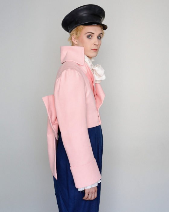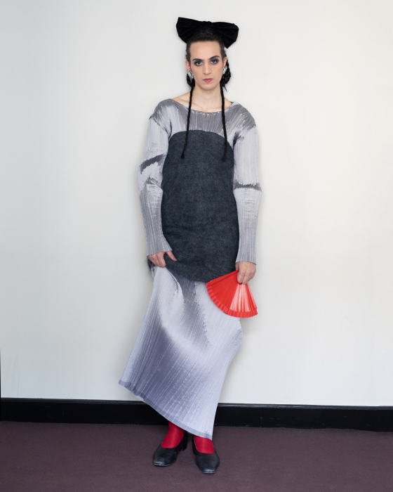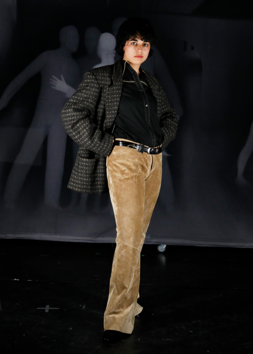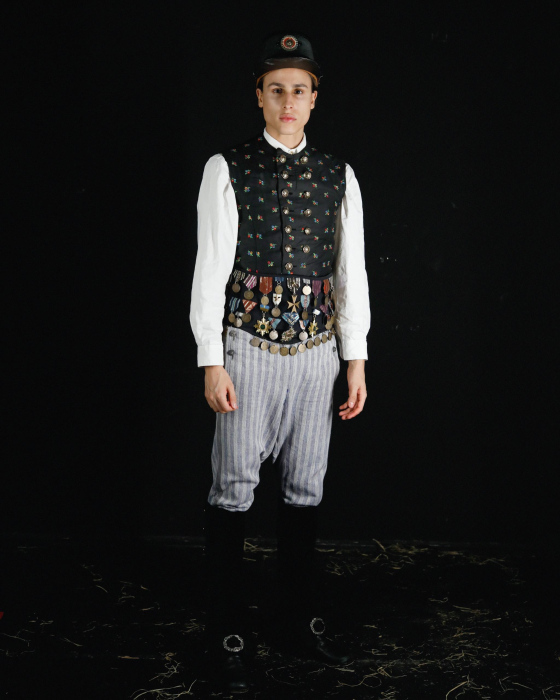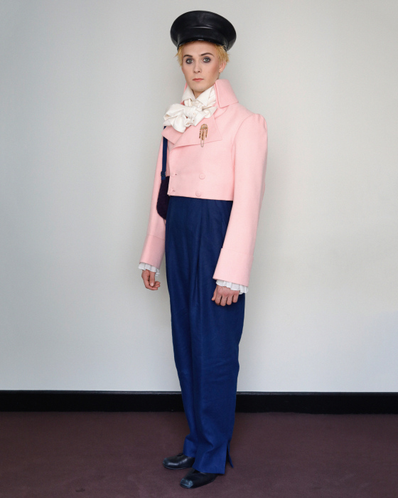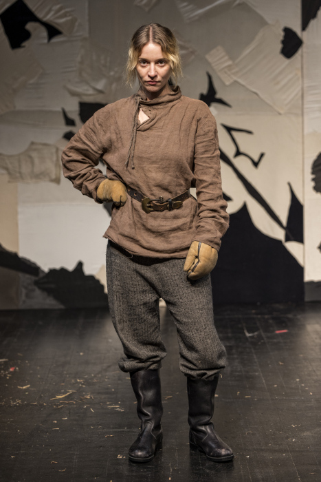 Das Stück arbeitet mit extremer Reduktion, oft gibt es nur einen minimalen Sound, ein Wort für eine ganze Geschichte, gerade so viel Licht, dass man noch ein kleines Fragment erkennen kann. Auch im Kostüm habe ich diese Aspekte aufgegriffen, ich arbeitet mit minimalen Verweisen, verundeutlichte jedoch eine Zuordnung zu Ort und Zeit.