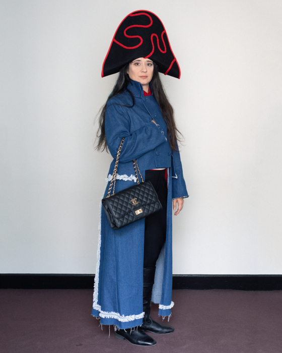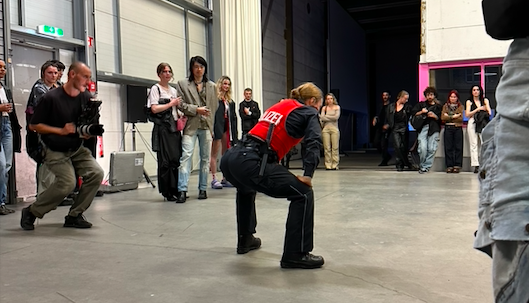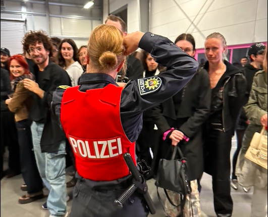 In unserem Kostümkonzept für „Il Viaggio A Reims“ greifen wir Kleidungsstücke auf, die wir aus unserem urbanen Straßenbild kennen. Hierbei handelt es sich um eine Kleidung, die in Geschäften von H&M bis zu teuren Designergeschäften, in nur leicht abgewandelten Variationen, zu finden ist. Es ist eine Klei- dung, die vorwiegend mit modisch interpretierten Sport-, und Militär-Attributen spielt. Diese Attribute haben jedoch längst den Bezug zu ihrer Funktionalität verloren. Sie bestehen fort in ihrer Zeichenhaftigkeit als reine Konsumobjekte. So werden z.B. Sneaker nicht aus praktischen Gründen, sondern vielmehr aus reinem Objekt-Fetisch getragen. Alle Reisenden tragen sehr aktuelle, modische Silhouetten.